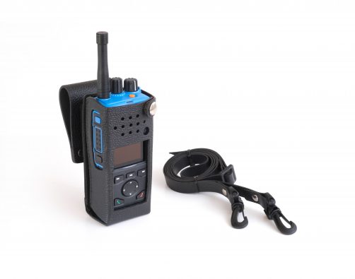 Heavy duty leather case and strap with belt loop for the DTEx series hand portable radio